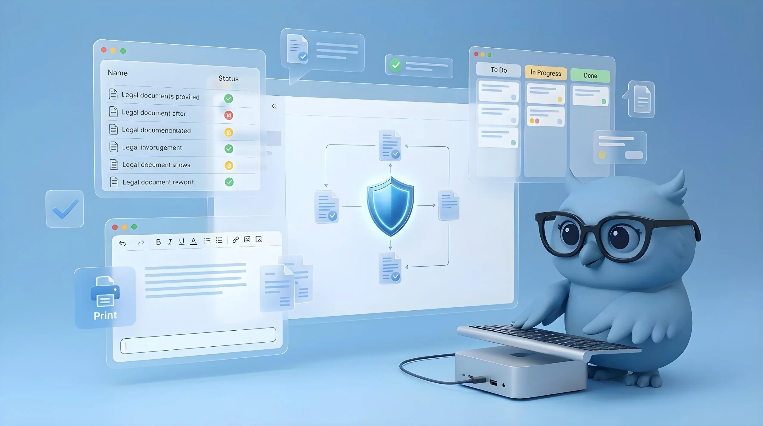 Рутинные задачи больше не требуют вашего внимания - система автоматически создаёт и проверяет документы, освобождая юристов для действительно важных вопросов.